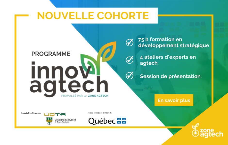 LA ZONE AGTECH LANCE LE PROGRAMME INNOV’AGTECH, UN PROGRAMME CONÇU POUR ACCOMPAGNER LES ENTREPRISES DU QUÉBEC DANS LA CONCEPTION D’UNE PLANIFICATION STRATÉGIQUE DANS LE SECTEUR DES AGTECHS ET BIOPRODUITS VÉGÉTAUX 17 mars 2022