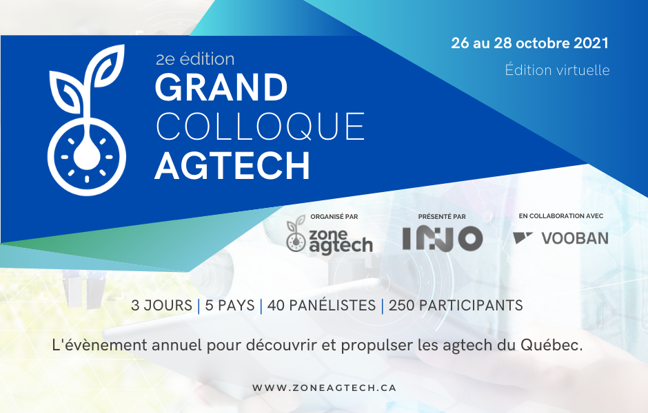 2ND EDITION OF THE GRAND COLLOQUE AGTECH DU QUÉBEC | The Zone Agtech unveils the program for the annual meeting of innovative agricultural technologies in Quebec. 16 septembre 2021