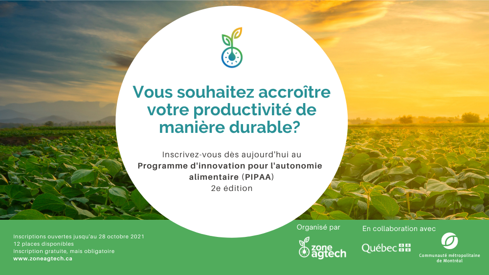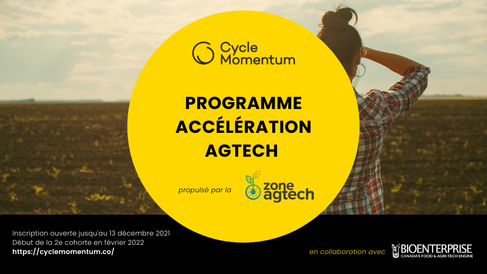 LA ZONE AGTECH ET CYCLE MOMENTUM ANNONCENT LA 2E ÉDITION DU PROGRAMME D’ACCÉLÉRATION 100% DÉDIÉ AUX AGTECHS EN COLLABORATION AVEC BIOENTERPRISE CORPORATION 1 novembre 2021